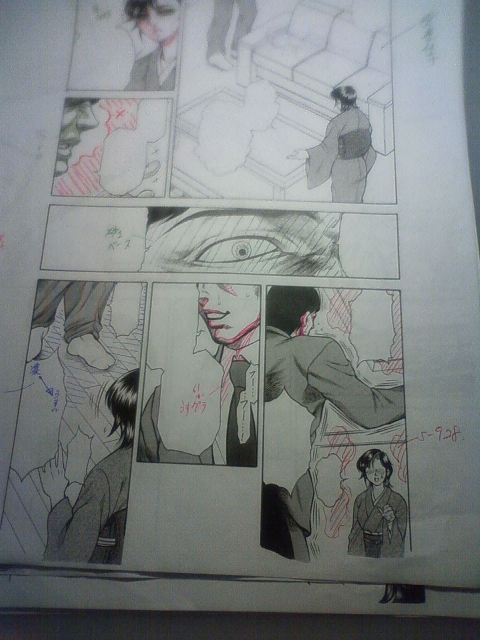 今回の画像は、いってみれば設計図みたいな?感じのヤツでして、原稿のコピーに色ペンで作業内容を書き込んだものです。